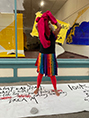 Erin Rose Thomas created my bird costume and mask from my up-cycled paintings.